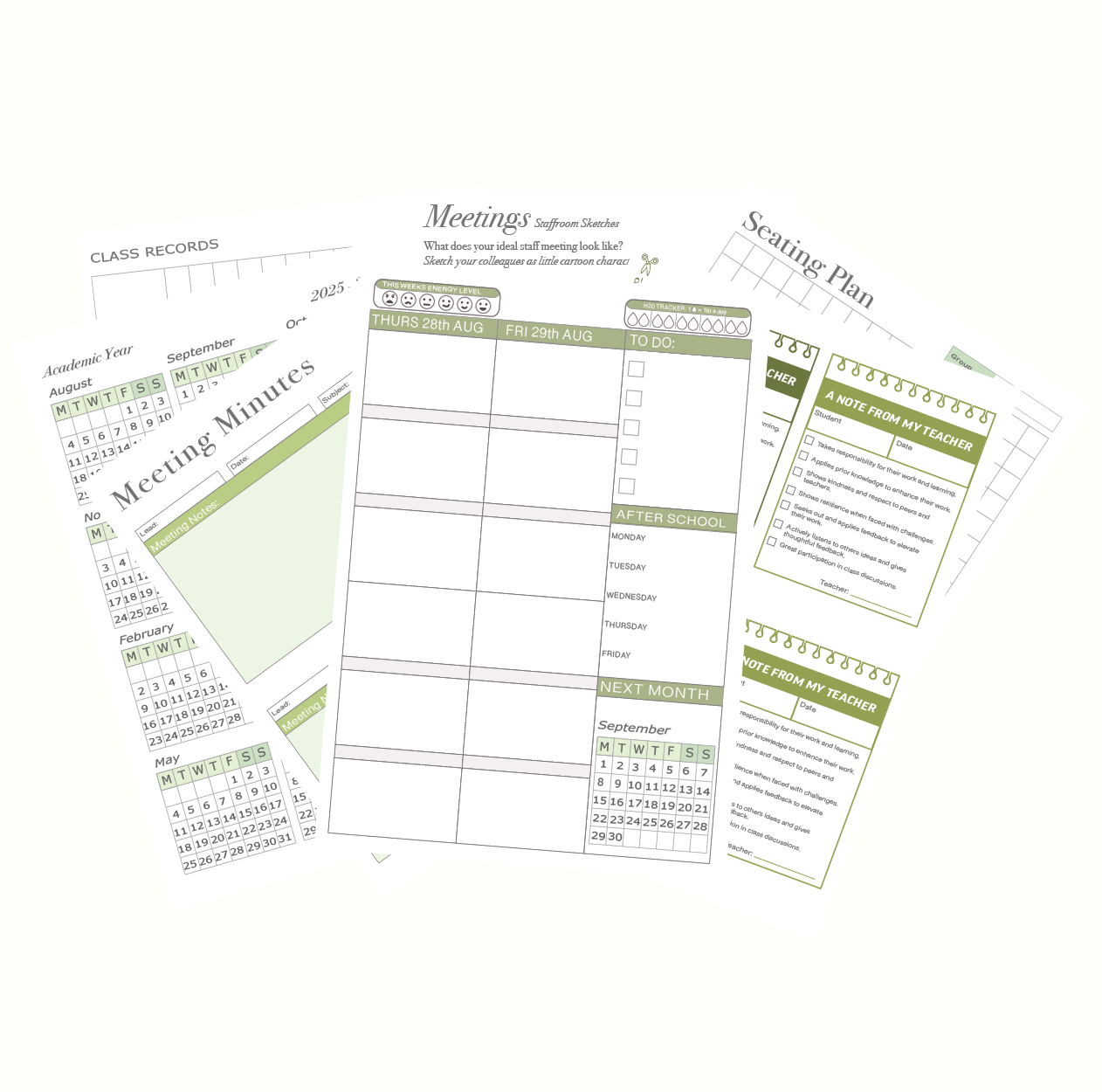 Our planners are designed by a Teacher, for teachers practical, beautiful, real classroom life. From structured weekly layouts to space for meetings, notes, and wellbeing, every page is made to support how teachers actually work.